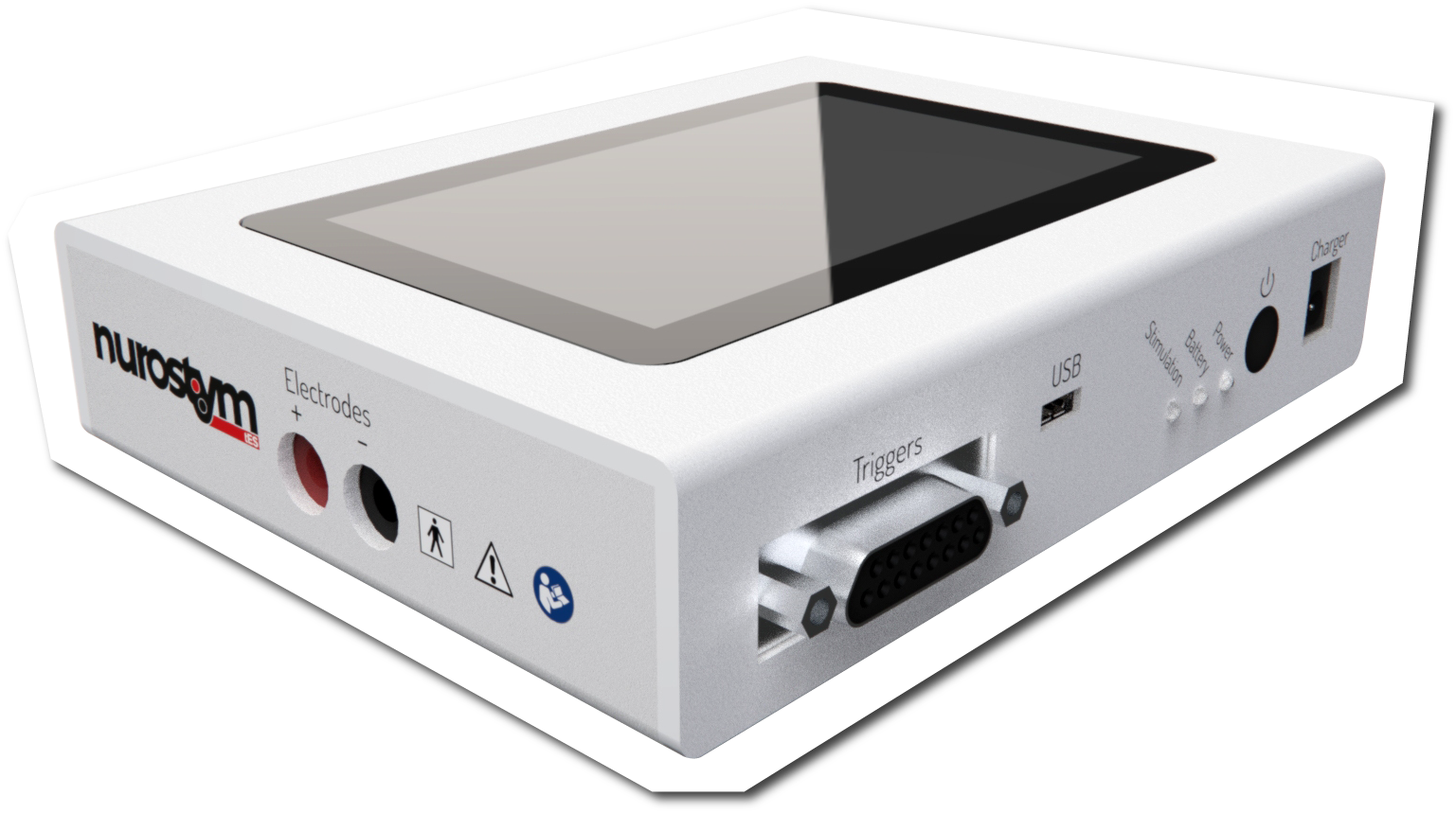 The nurostym is a powerful, complete Transcranial Electrical Stimulation (tES) device capable of standard tES modalities: tDCS, tACS, tRNS, pulsed tDCS, amplitiude-modalulated tACS, and analogue input modes. The device offers complete control of stimulation parameters; fully programmable protocols; sham and double-blind controls; advanced safety functions; and user-friendly controls to enable even the most complex of studies using tES.